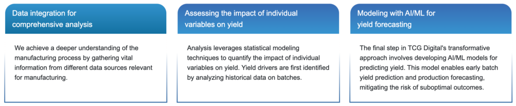 With the promise of improving yield and enhancing batch profitability, we at TCG Digital offer a transformative solution powered by tcgmcube, an end-to-end AI platform for efficient batch yield analysis.